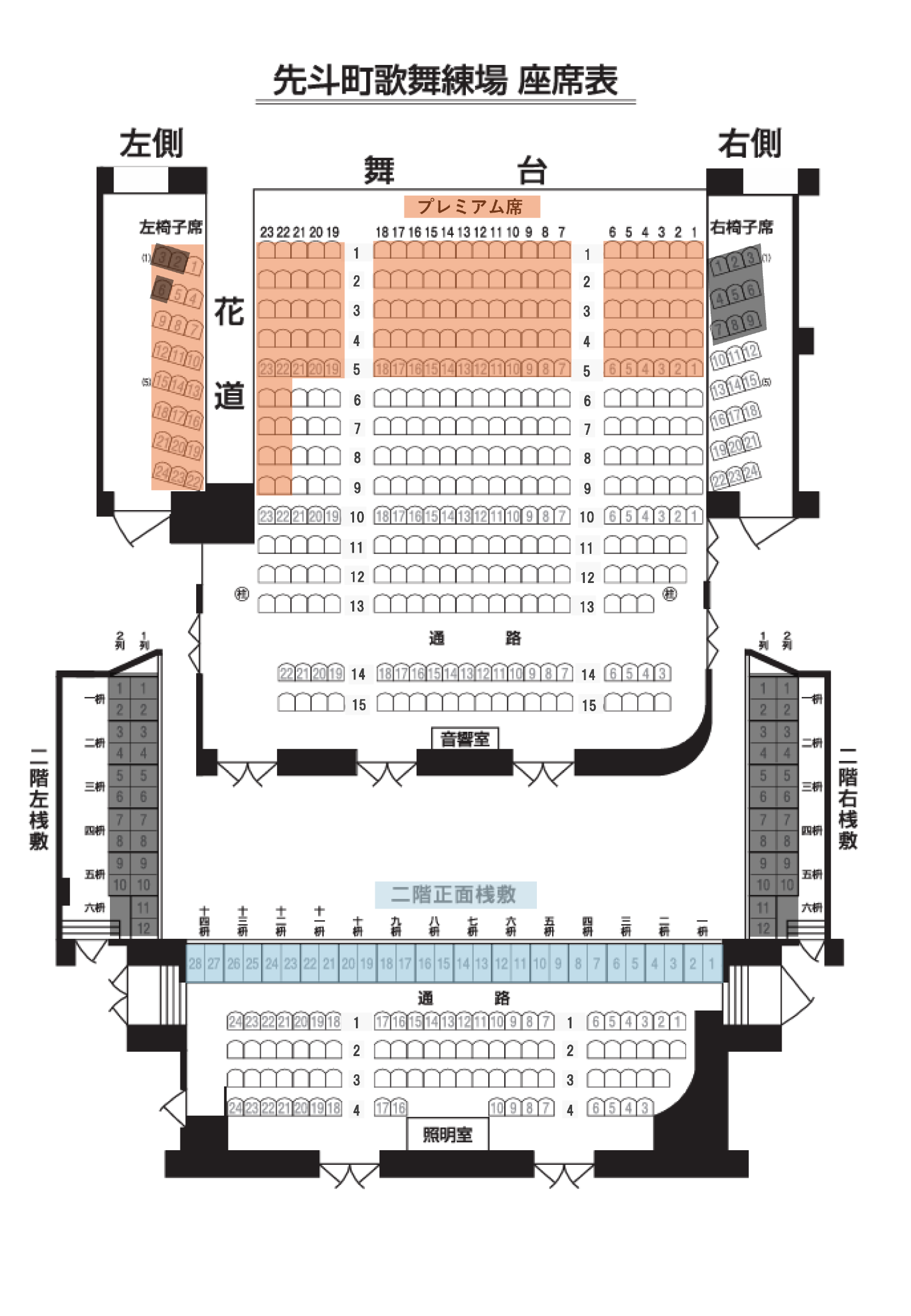 - ※二階正面プレミアム桟敷席はペア席(2席分)。特典2個付き[各回別Ver.]