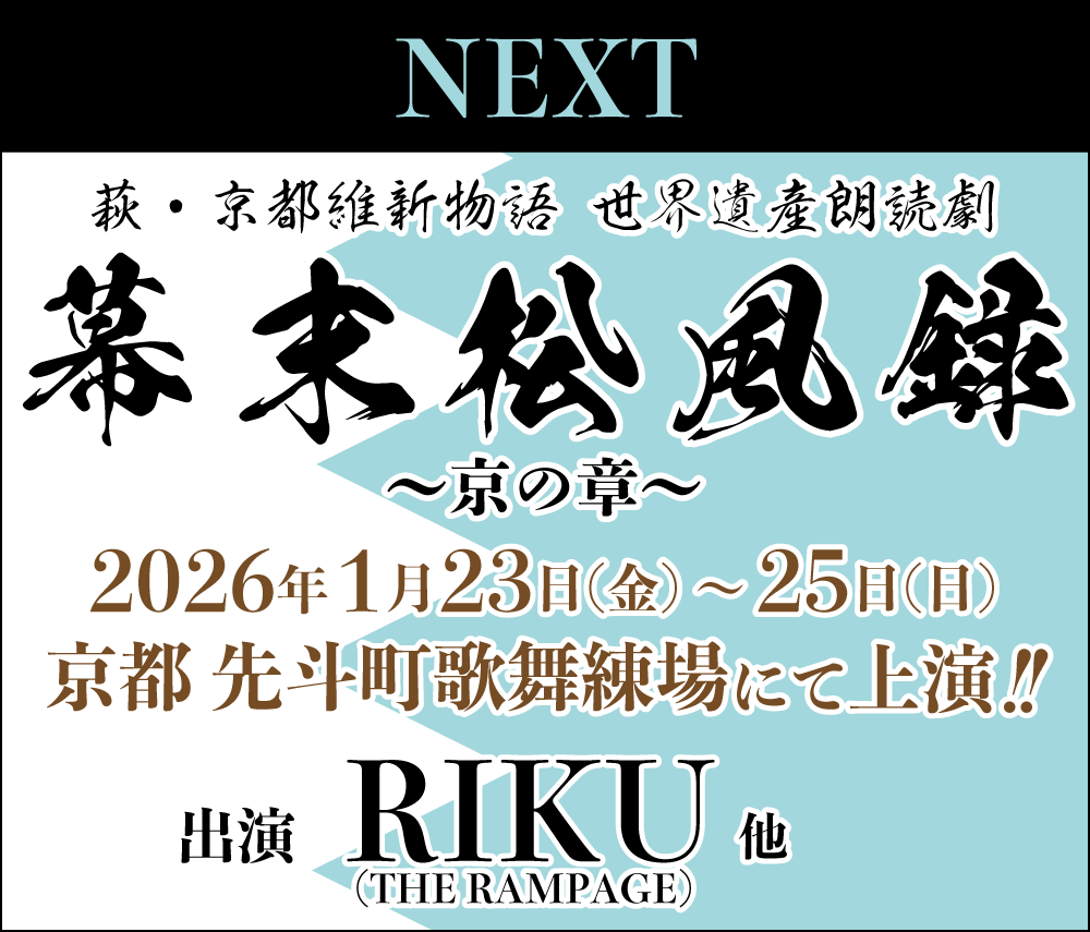 事前に公式SNS等にて告知致しますのでご来場前にご確認をお願いいたします。 - ・15日16:15公演/19:30公演は、客席を含む会場内に、配信・収録用カメラが入ります。